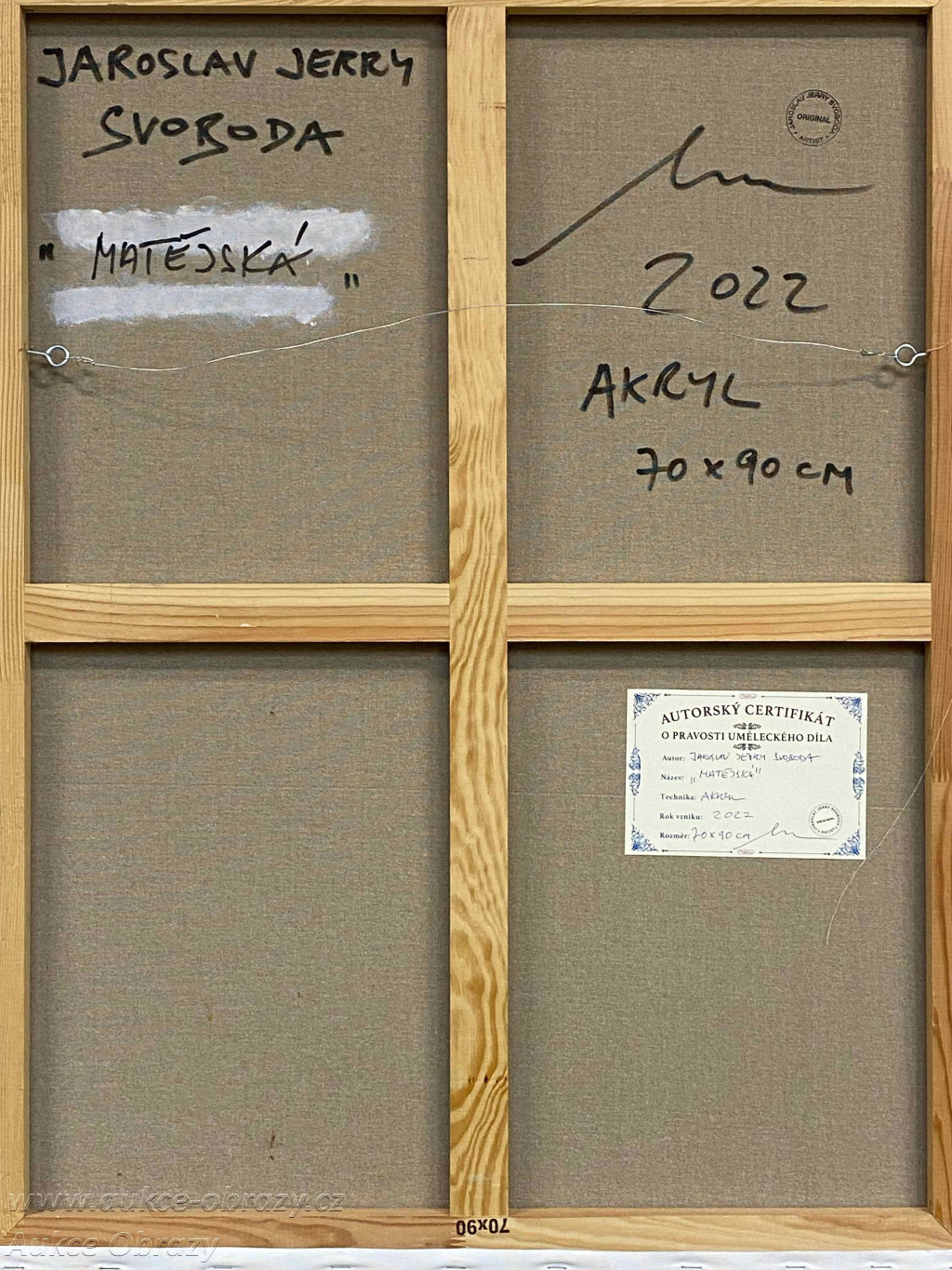 na zadní straně autorský přípis včetně autorského certifikátu